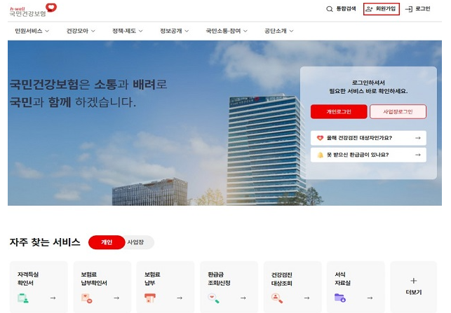 온라인으로 건강보험 관련 신고를 처리할 수 있도록 만든 공식 서비스입니다.