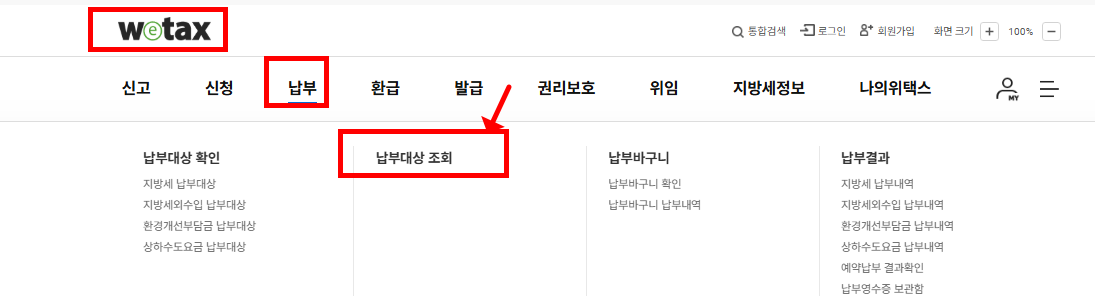 👉 **위택스**에서 조회합니다.
