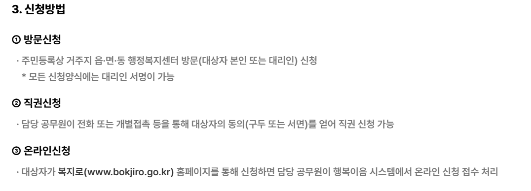 - 기초생활수급자 (생계·의료·주거·교육급여)