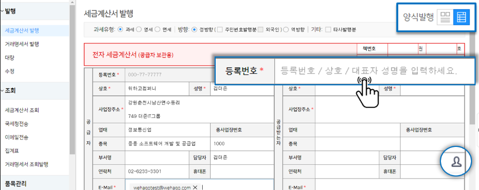 전자세금계산서 발급 신청을 한 경우에만 가능합니다.