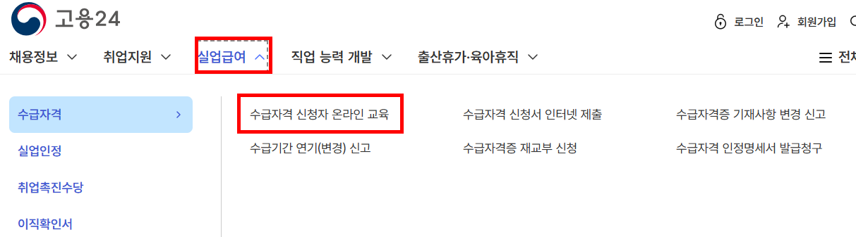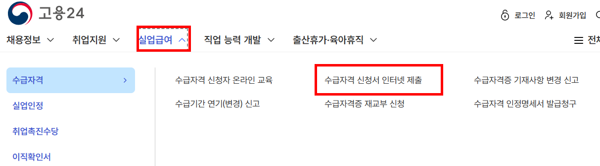 2️⃣ 고용보험 사이트에서 수급자격 신청(온라인 가능)