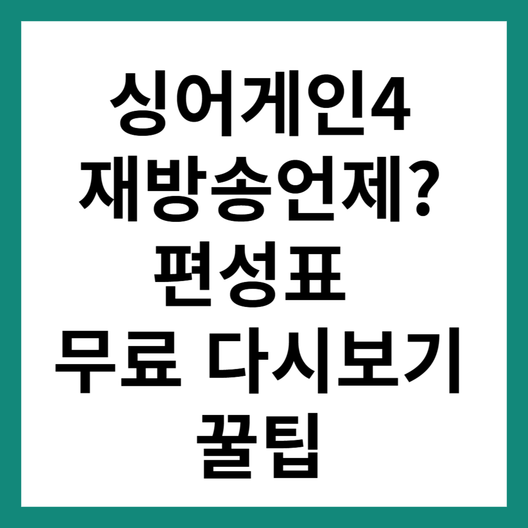 🎤 싱어게인4 재방송 언제 하나요? JTBC의 화제 오디션 프로그램 싱어게인4! 회차가 거듭될수록 실력파 참가자들이 뜨거운 무대를 보여주고 있어요. 본방을 놓쳤다면 “재방송은 언제하는지 어디서 다시 볼 수 있는지 궁금하실 텐데요.이번 포스팅에서는 최신 편성표 기반 재방송 시간표 + OTT 다시보기 플랫폼 + 무료 시청 팁까지 한 번에 정리해드립니다.