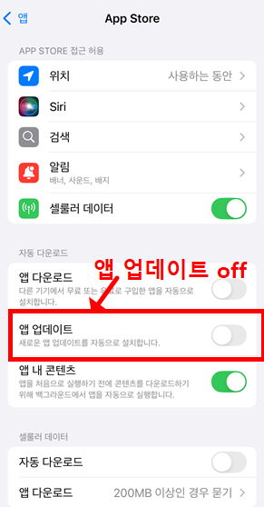 - 앱 업데이트 OFF