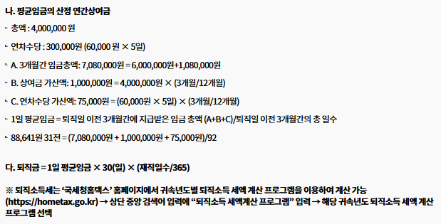 퇴직금 계산기는 여러 곳에서 제공되고 있으나,